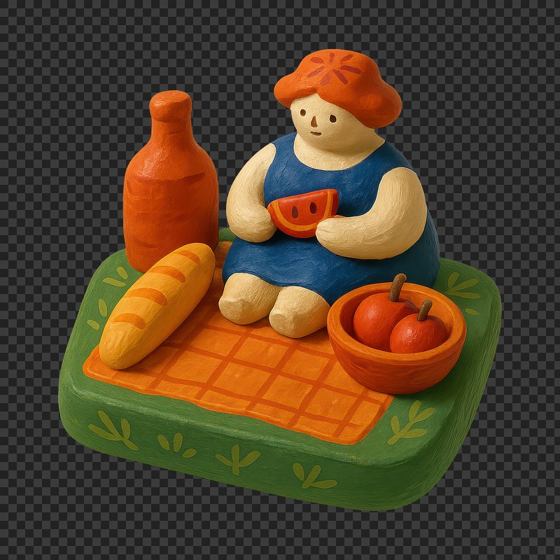 PNG Charming picnic clay figure illustration. https://www.rawpixel.com/image/22686001/png-charming-picnic-clay-figure-illustrationView license