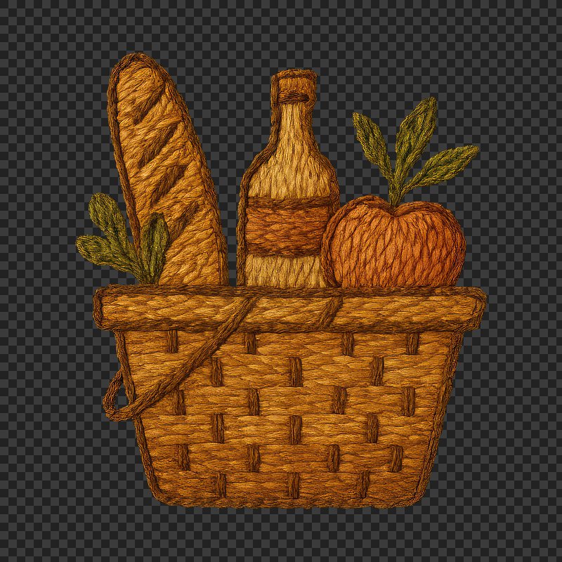 PNG Embroidered picnic basket illustration. https://www.rawpixel.com/image/24061552/png-embroidered-picnic-basket-illustrationView license