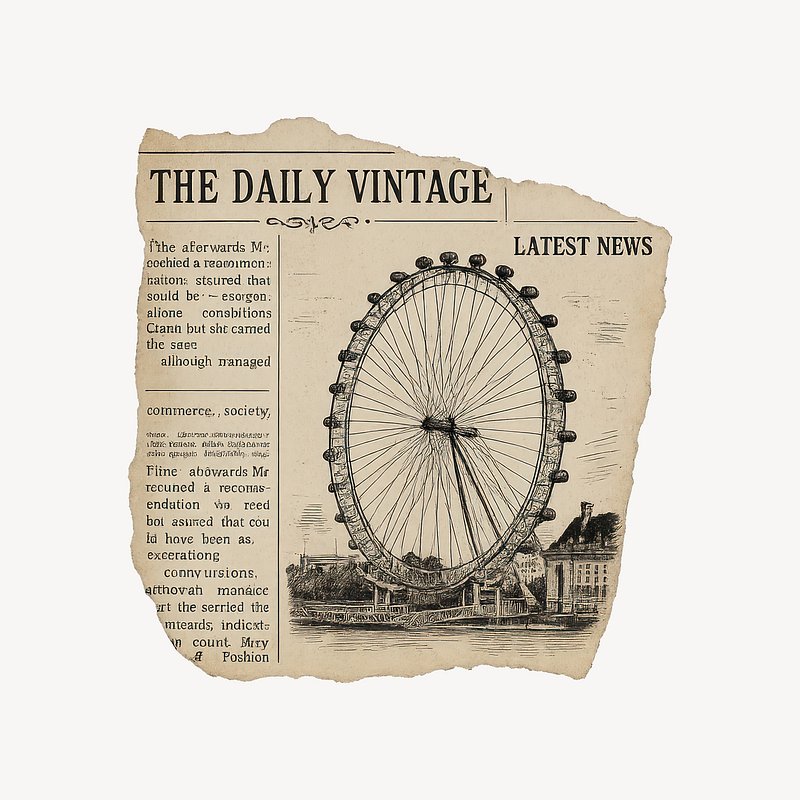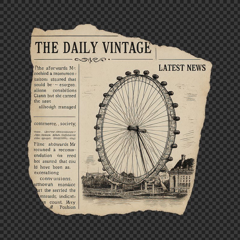 PNG Vintage London Eye newspaper illustration. https://www.rawpixel.com/image/20338978/png-vintage-london-eye-newspaper-illustrationView license
