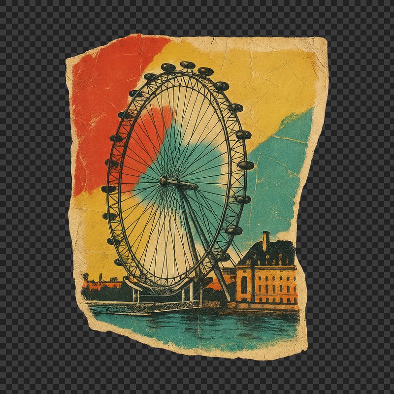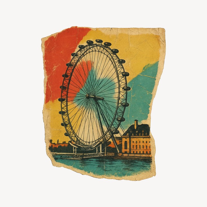 Vintage London Eye collage art. https://www.rawpixel.com/image/24569122/vintage-london-eye-collage-artView license