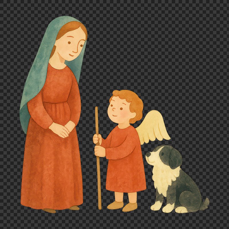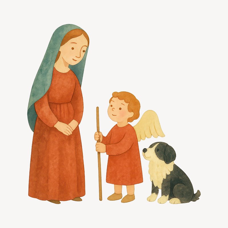 Illustration of mother, child, dog. https://www.rawpixel.com/image/19222245/illustration-mother-child-dogView license