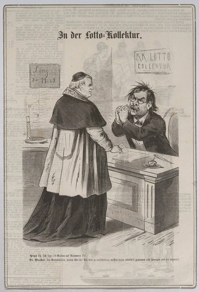 In the Lotto Collection;Minister of Finance Rudolf Brestel, Pope Pius IX.(Caricature from Kikeriki) (1870) by Carl von Stur https://www.rawpixel.com/image/11607733/image-paper-art-manFree Image from public domain license