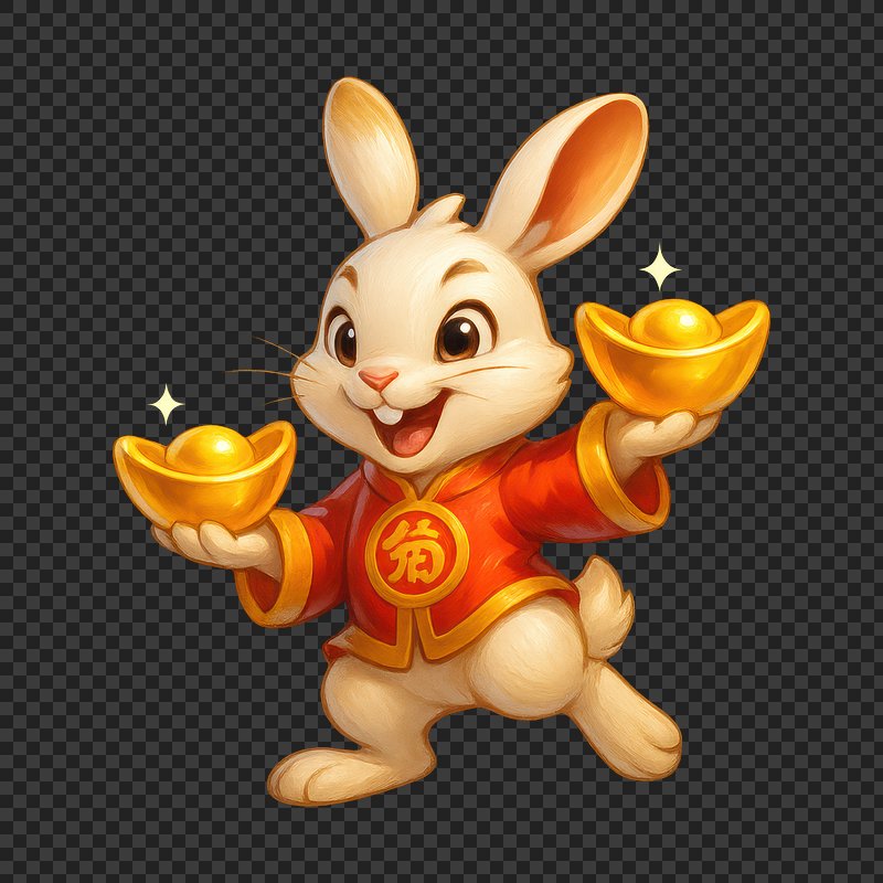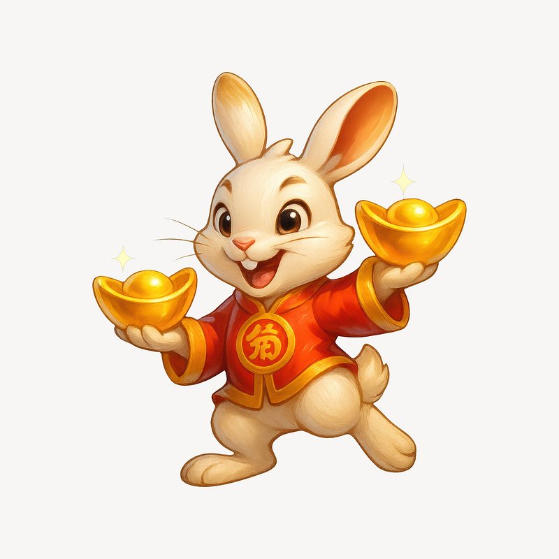 Cheerful rabbit with gold ingots. https://www.rawpixel.com/image/24970884/cheerful-rabbit-with-gold-ingotsView license