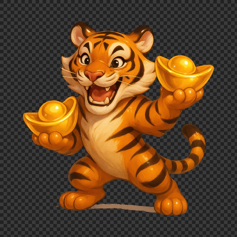 Tiger holding gold ingots illustration. https://www.rawpixel.com/image/24970651/tiger-holding-gold-ingots-illustrationView license