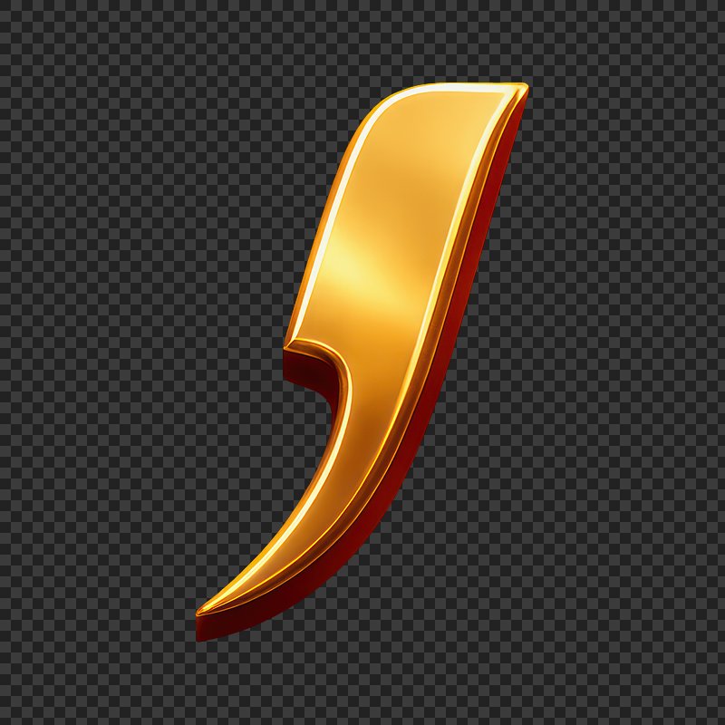 PNG Golden 3D comma punctuation symbol. https://www.rawpixel.com/image/24716222/png-golden-comma-punctuation-symbolView license