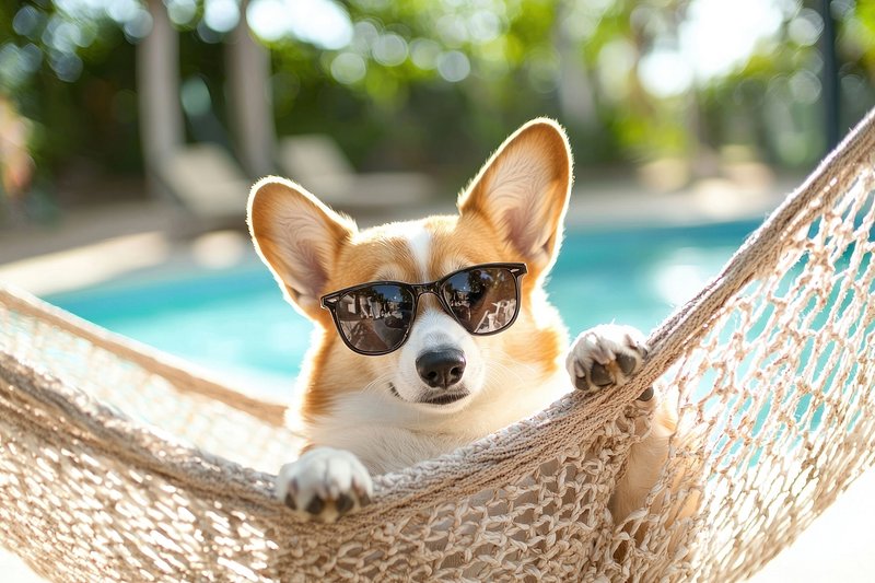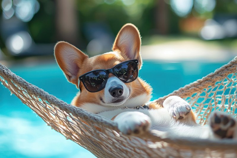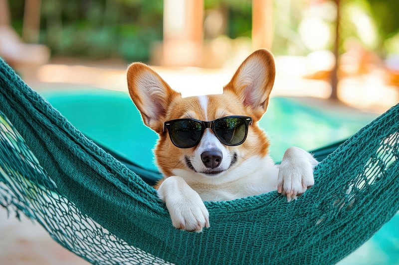 Corgi relaxing in hammock sunglasses https://www.rawpixel.com/image/25629370/corgi-relaxing-hammock-sunglassesView license