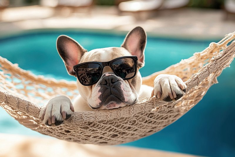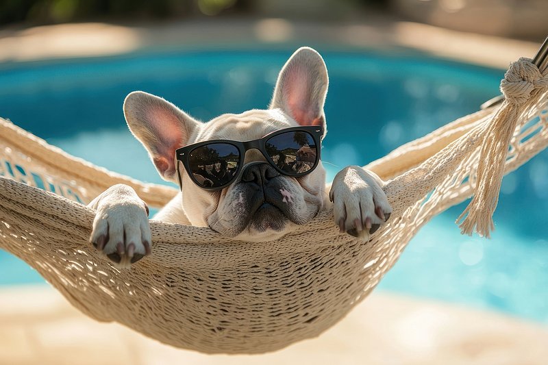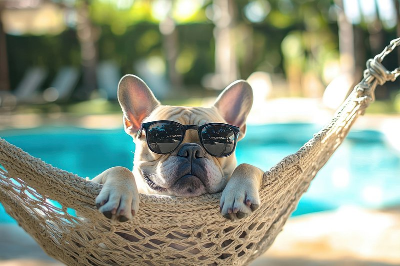 Bulldog relaxing in hammock sunglasses https://www.rawpixel.com/image/25629373/bulldog-relaxing-hammock-sunglassesView license