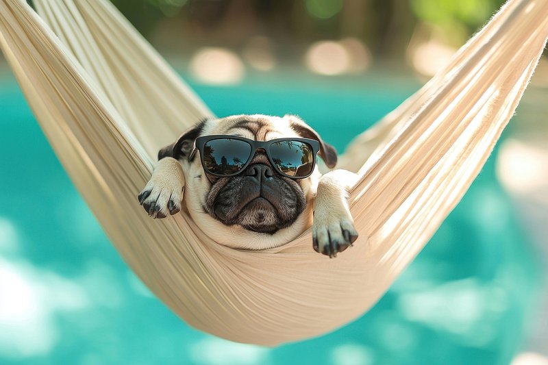 Pug relaxing in hammock sunglasses https://www.rawpixel.com/image/25629514/pug-relaxing-hammock-sunglassesView license
