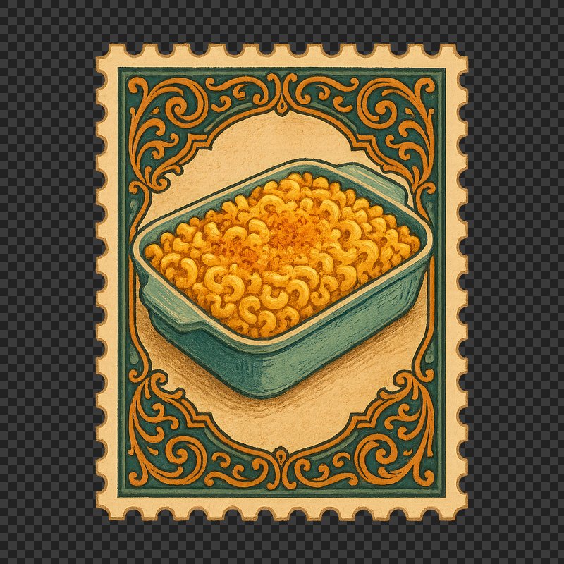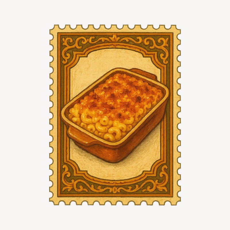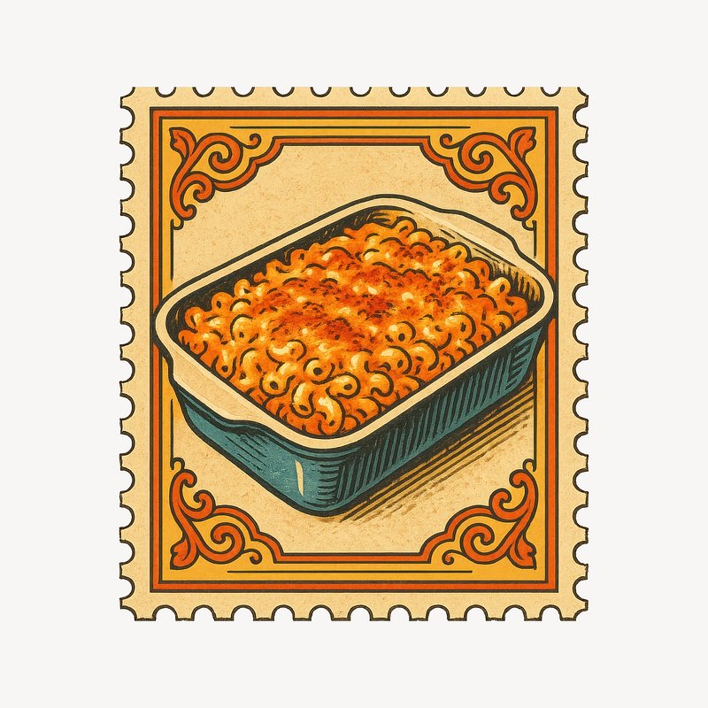 Vintage macaroni cheese stamp illustration. https://www.rawpixel.com/image/23117635/vintage-macaroni-cheese-stamp-illustrationView license