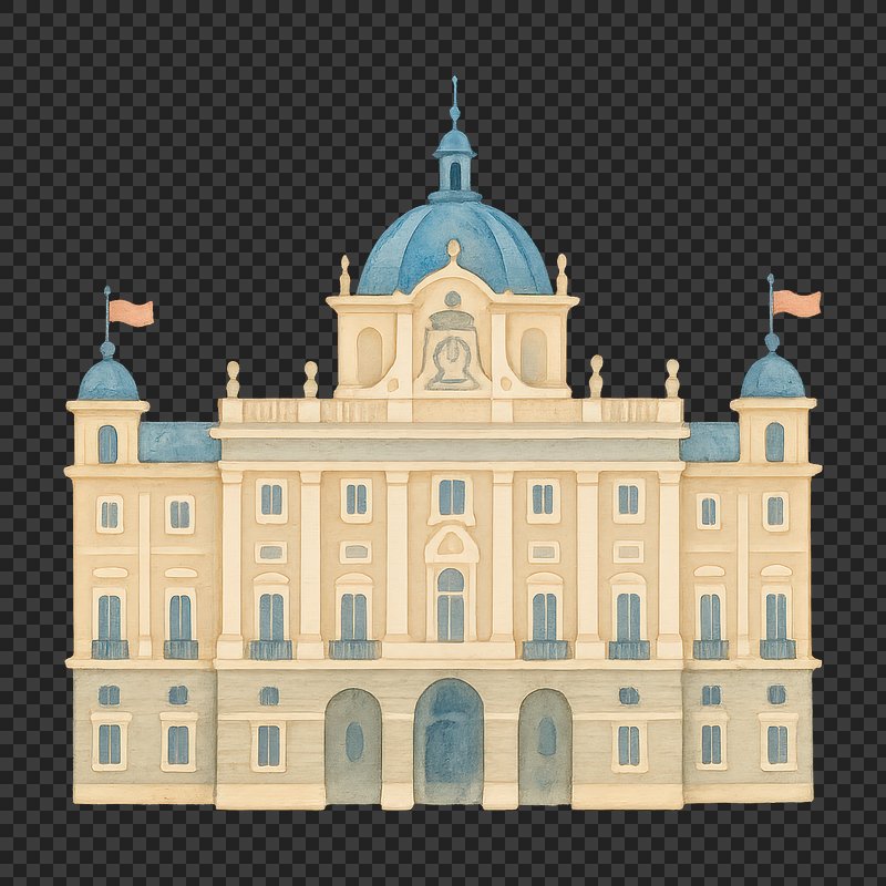 PNG Palace in madrid architecture watercolor building. https://www.rawpixel.com/image/16732891/png-palace-madrid-architecture-watercolor-buildingView license