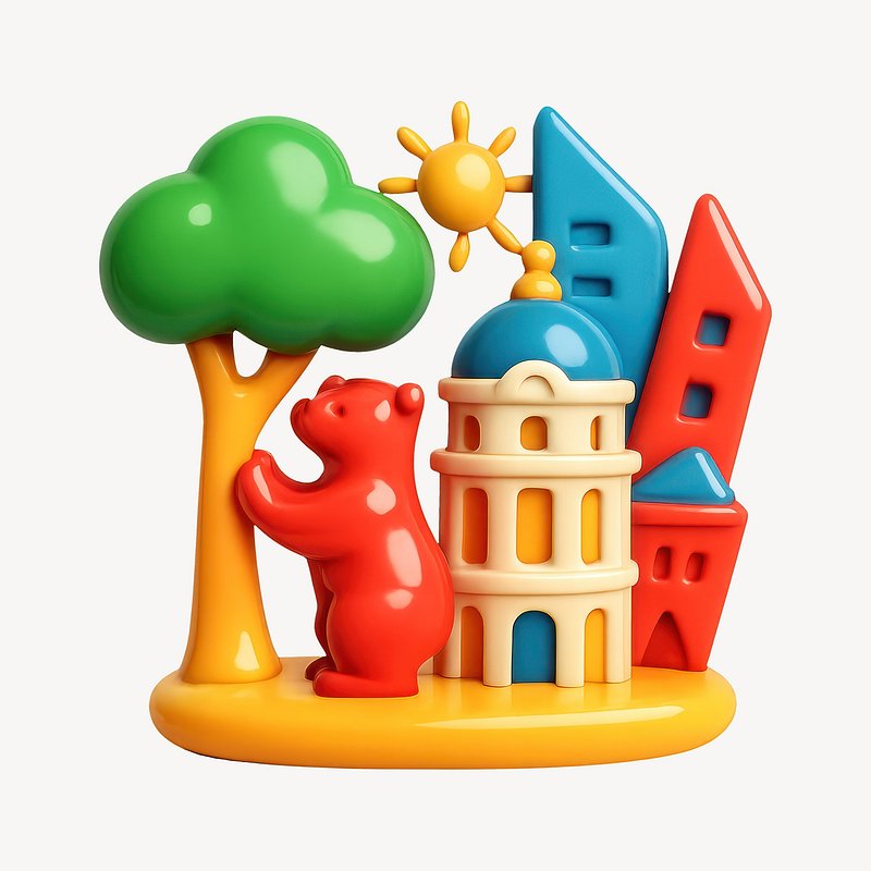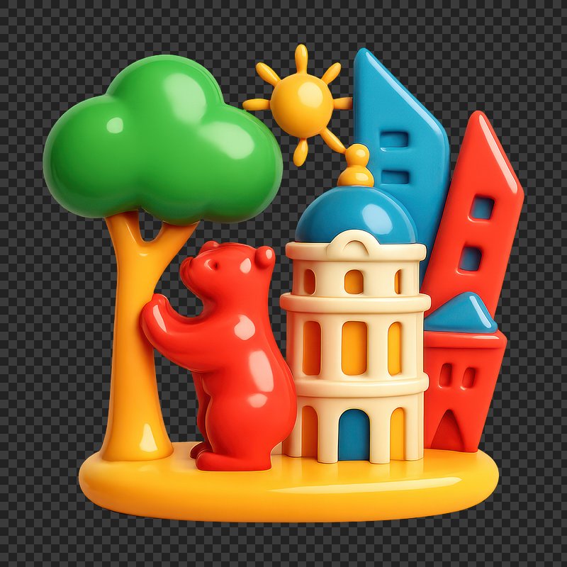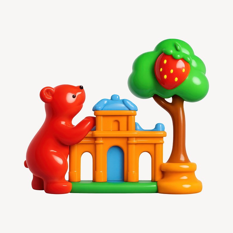 PNG Colorful bear, toy, tree, architecture. https://www.rawpixel.com/image/20248915/png-colorful-bear-toy-tree-architectureView license