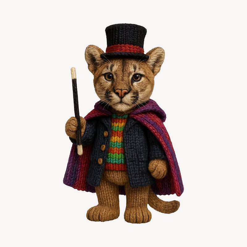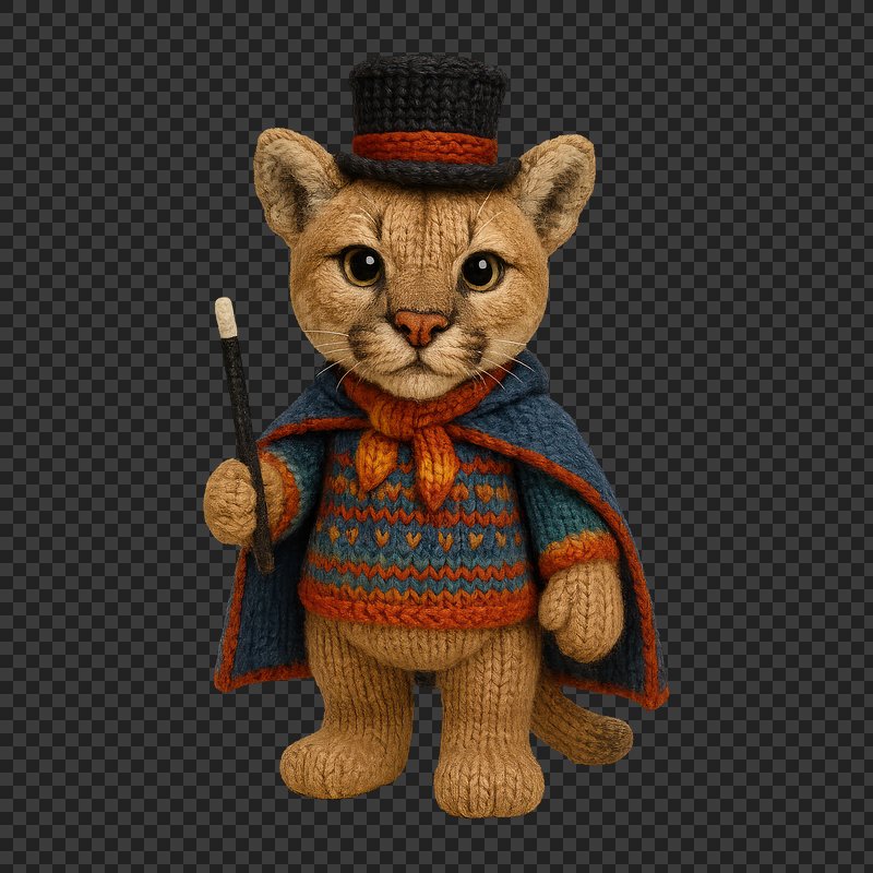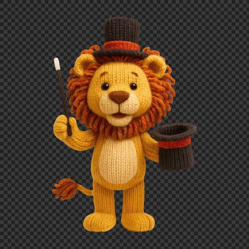 PNG Charming knitted lion magician illustration. https://www.rawpixel.com/image/24474274/png-charming-knitted-lion-magician-illustrationView license