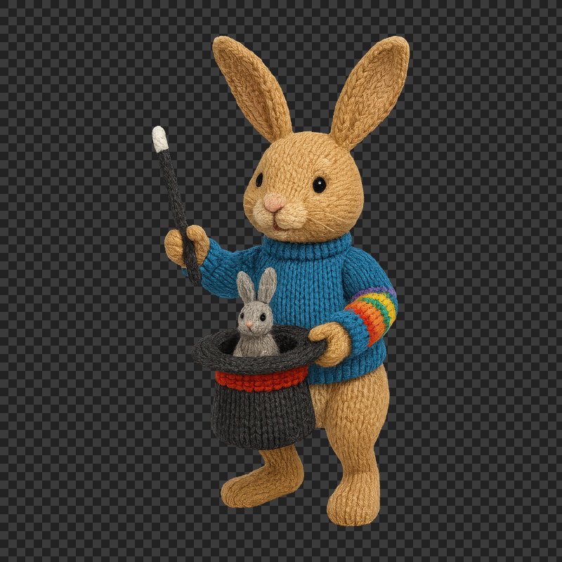 PNG Cute knitted rabbit magician. https://www.rawpixel.com/image/24523151/png-cute-knitted-rabbit-magicianView license
