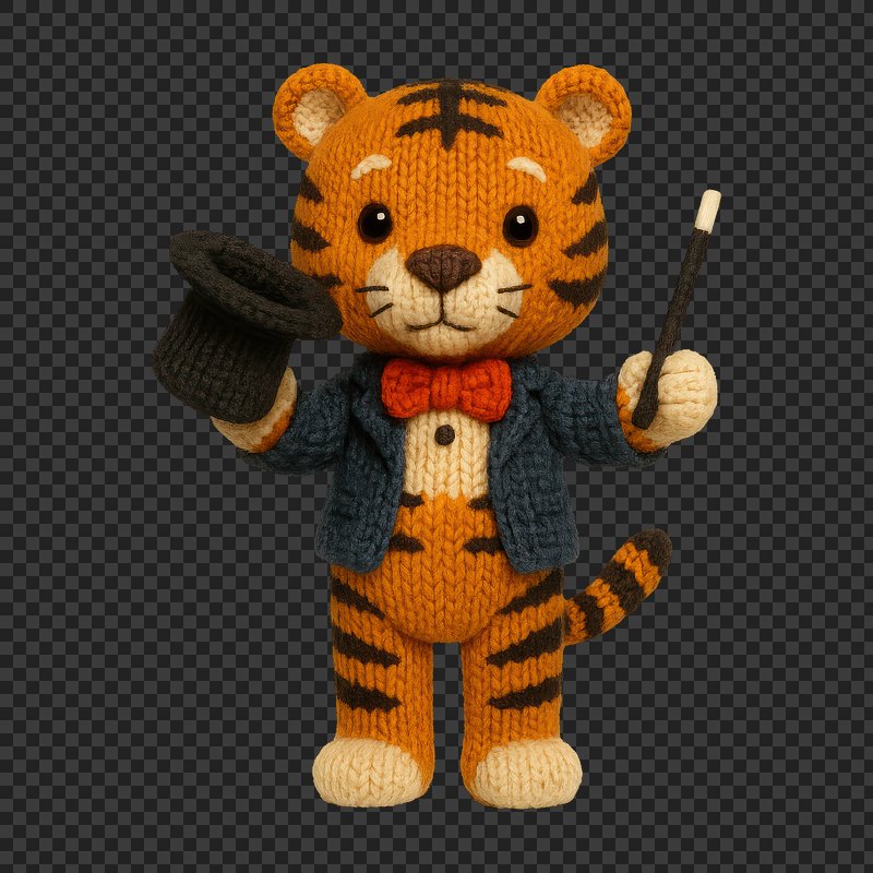 PNG Cute knitted tiger magician toy https://www.rawpixel.com/image/24522217/png-cute-knitted-tiger-magician-toyView license