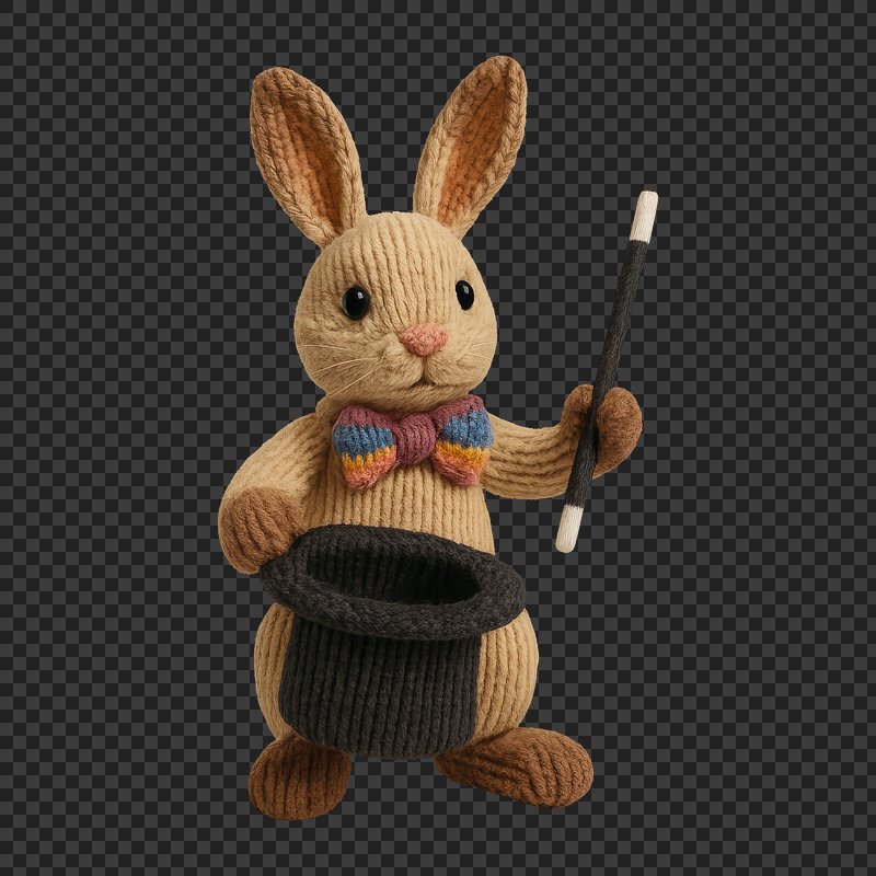 PNG Knitted rabbit magician performing tricks. https://www.rawpixel.com/image/24522057/png-knitted-rabbit-magician-performing-tricksView license