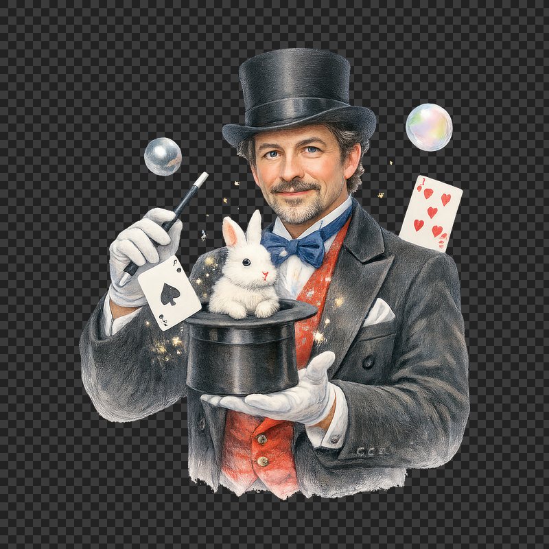 PNG Magician performing magic tricks. https://www.rawpixel.com/image/24591773/png-magician-performing-magic-tricksView license