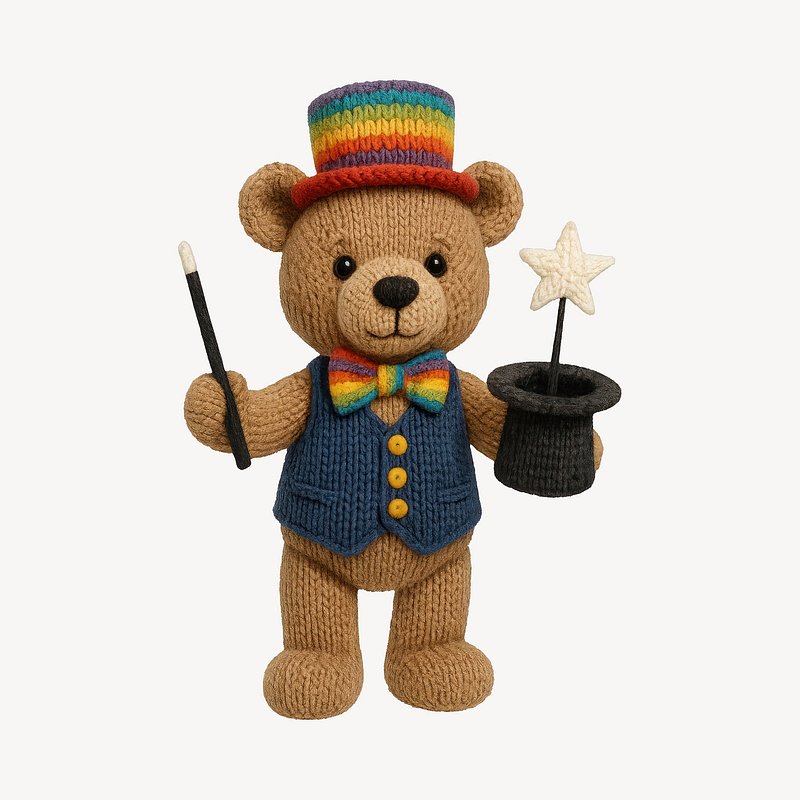 Colorful knitted bear magician https://www.rawpixel.com/image/24534300/colorful-knitted-bear-magicianView license