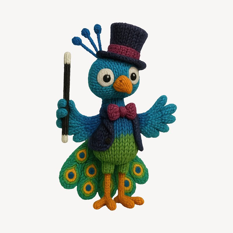 Colorful knitted peacock magician https://www.rawpixel.com/image/24659557/colorful-knitted-peacock-magicianView license