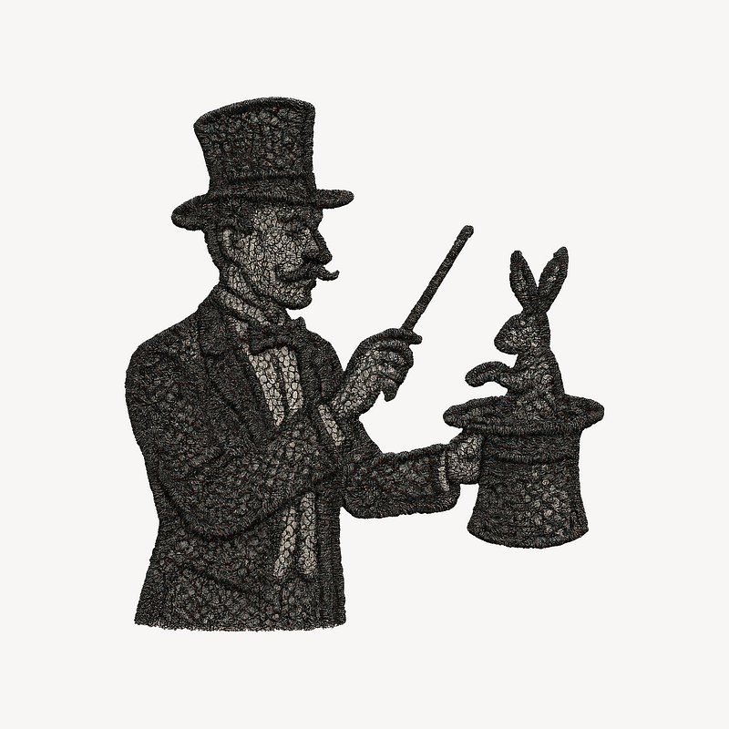 Vintage magician performing rabbit trick. https://www.rawpixel.com/image/24951415/vintage-magician-performing-rabbit-trickView license
