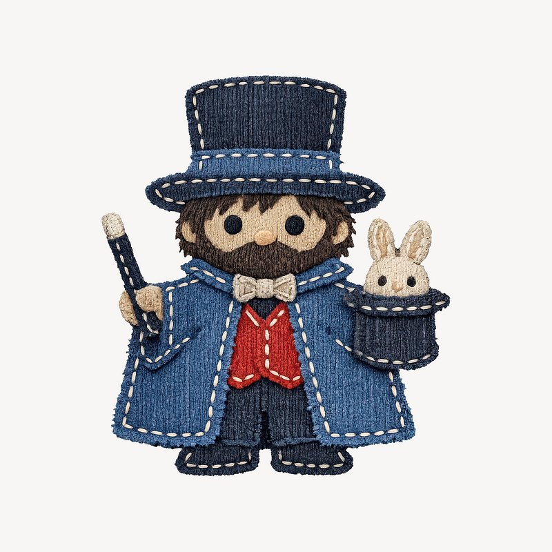 Cute magician with stitched details. https://www.rawpixel.com/image/25565641/cute-magician-with-stitched-detailsView license