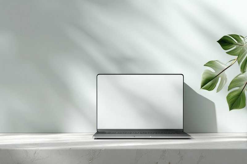 Minimalistic laptop with green leaves. https://www.rawpixel.com/image/24100028/minimalistic-laptop-with-green-leavesView license