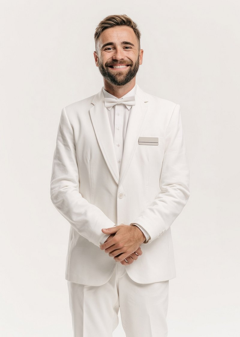 Elegant groom in white suit https://www.rawpixel.com/image/24283678/elegant-groom-white-suitView license