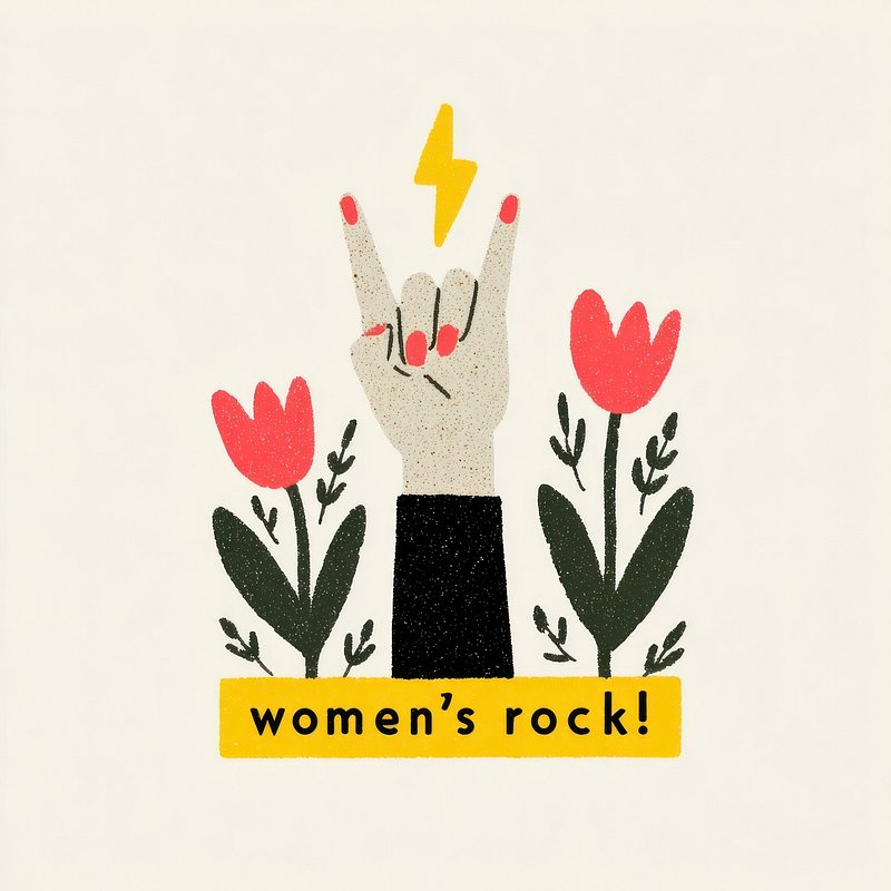 Empowering women rock illustration. https://www.rawpixel.com/image/25136581/empowering-women-rock-illustrationView license