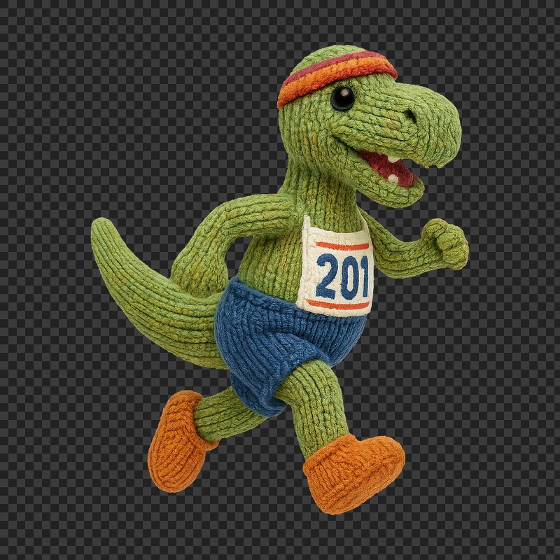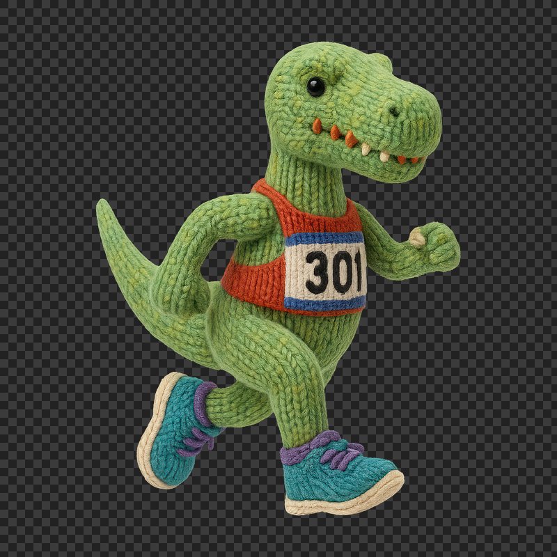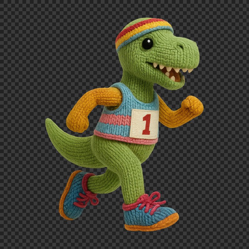 PNG Knitted dinosaur toy running. https://www.rawpixel.com/image/24440038/png-knitted-dinosaur-toy-runningView license