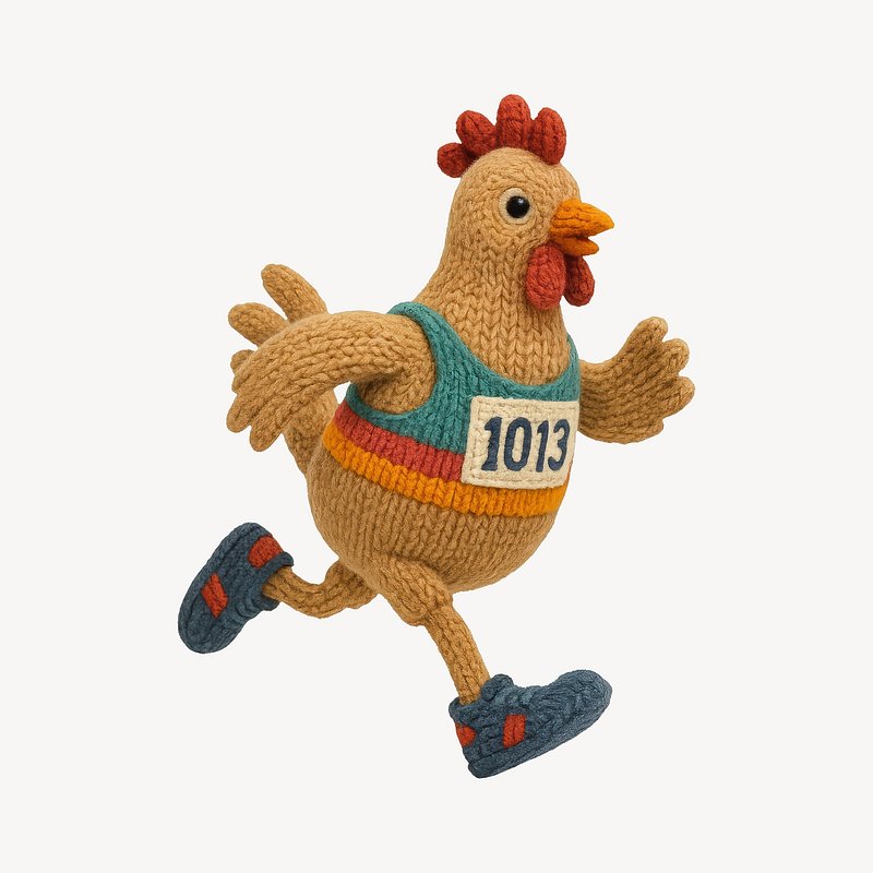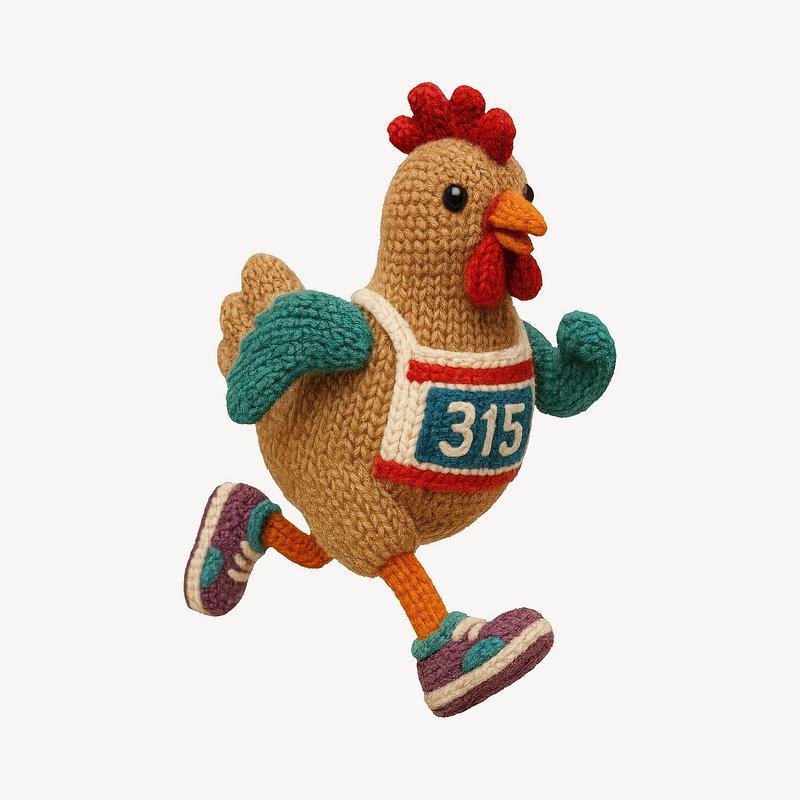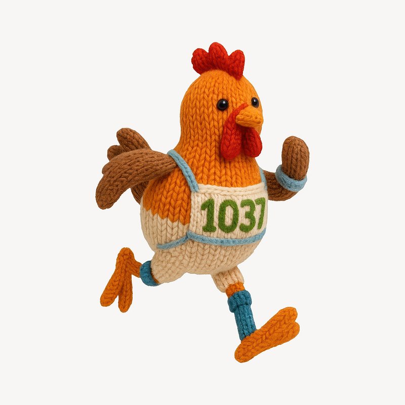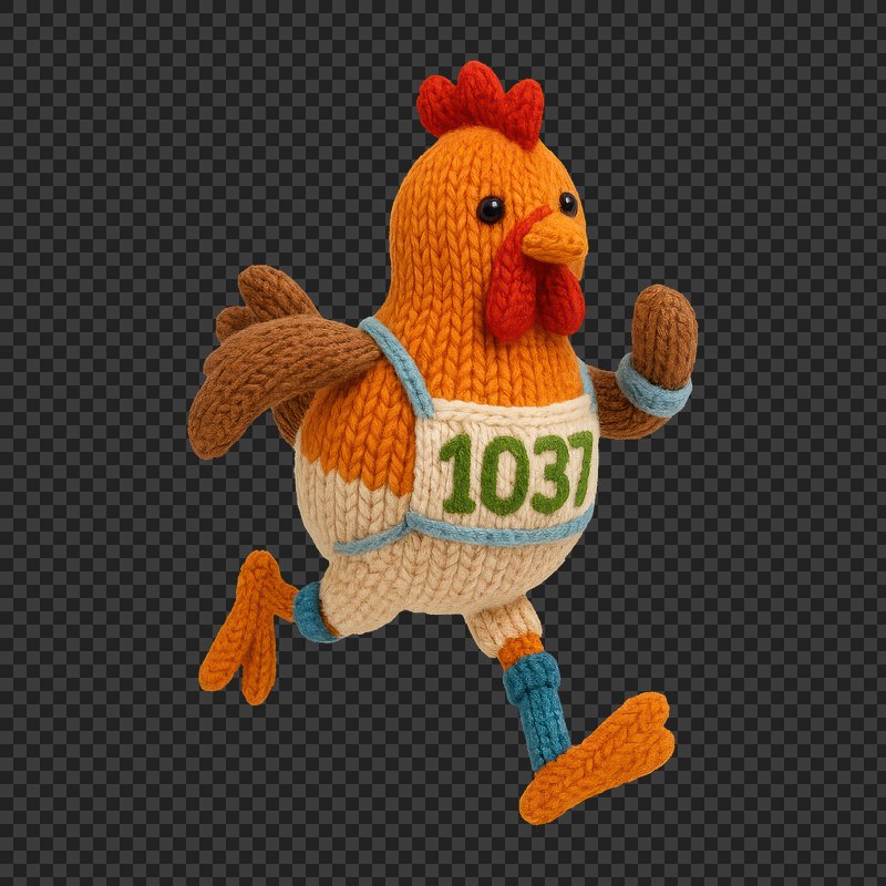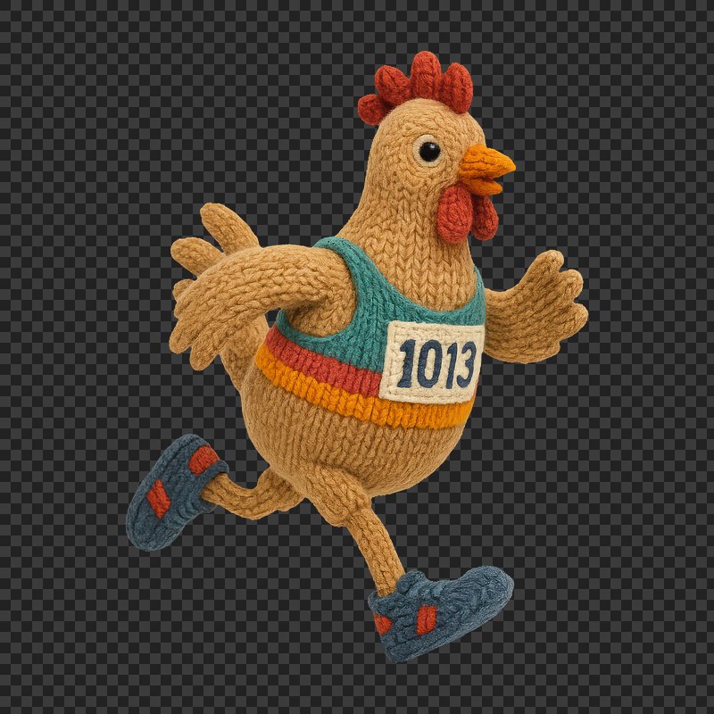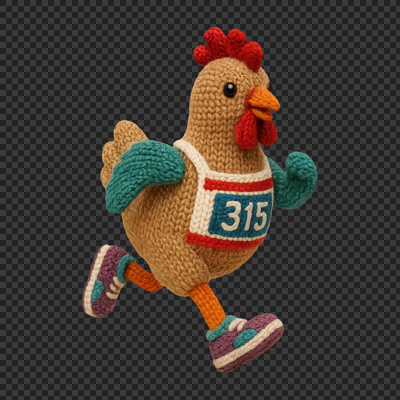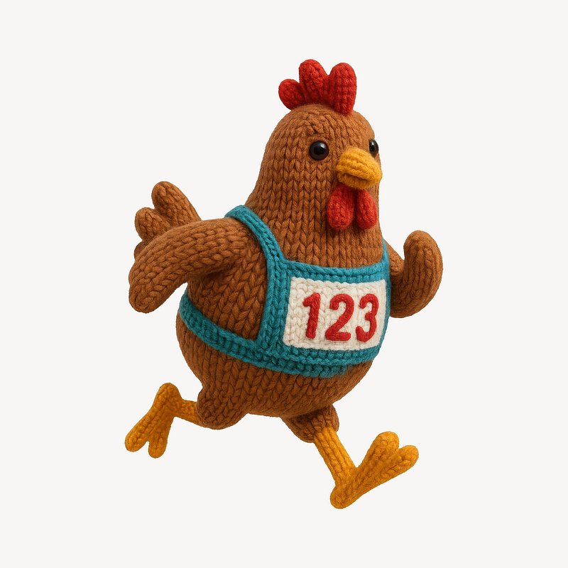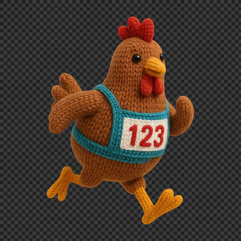 Knitted chicken running marathon. https://www.rawpixel.com/image/24535483/knitted-chicken-running-marathonView license