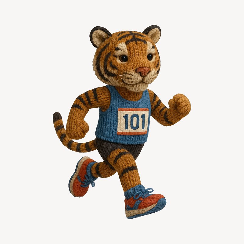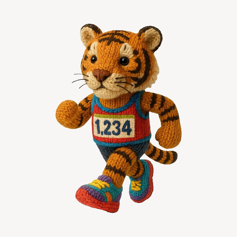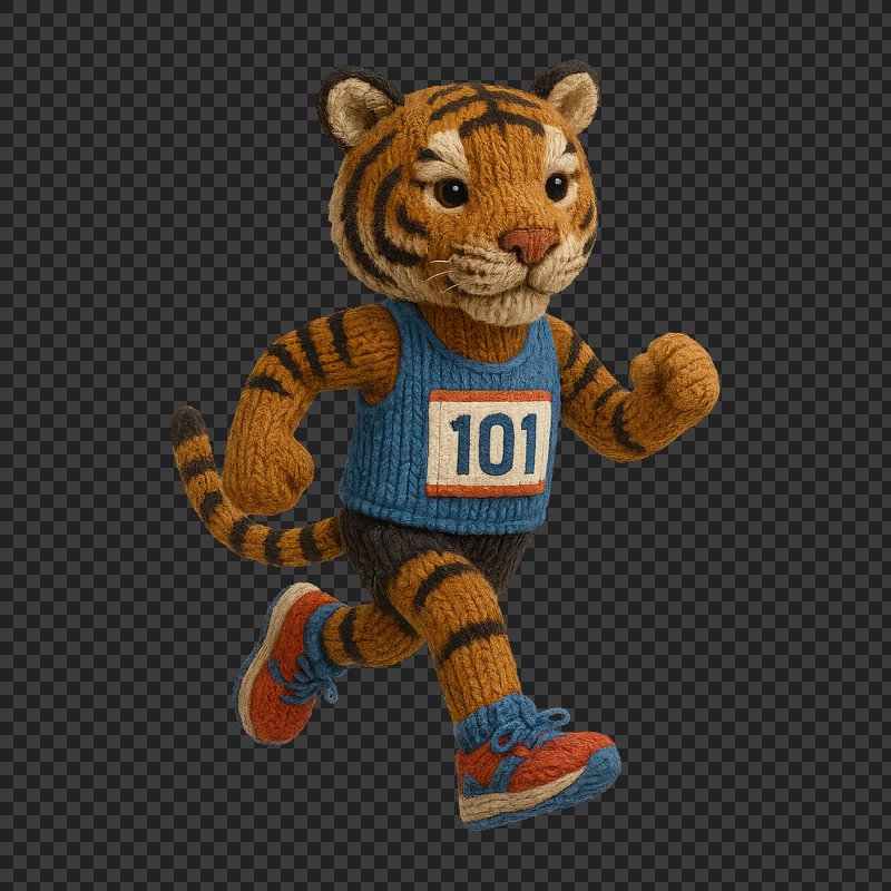 PNG Knitted tiger marathon runner illustration. https://www.rawpixel.com/image/24446108/png-knitted-tiger-marathon-runner-illustrationView license