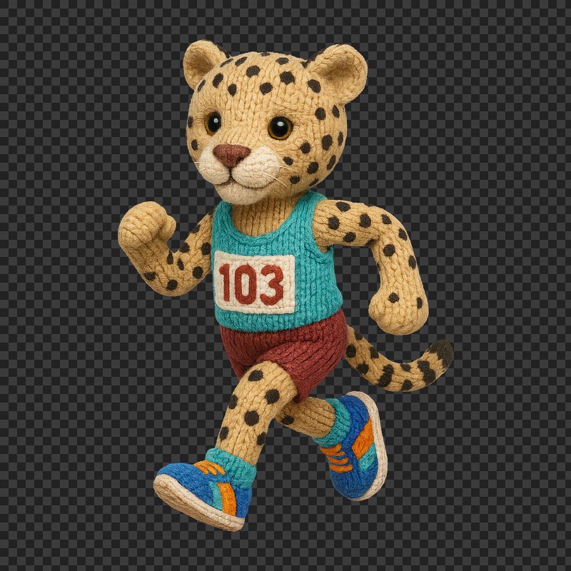 PNG Knitted cheetah runner toy https://www.rawpixel.com/image/24479558/png-knitted-cheetah-runner-toyView license
