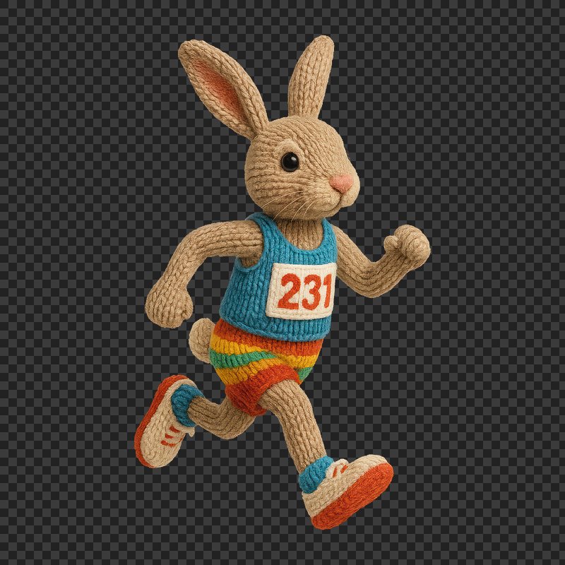 PNG Knitted rabbit running athlete https://www.rawpixel.com/image/24480085/png-knitted-rabbit-running-athleteView license