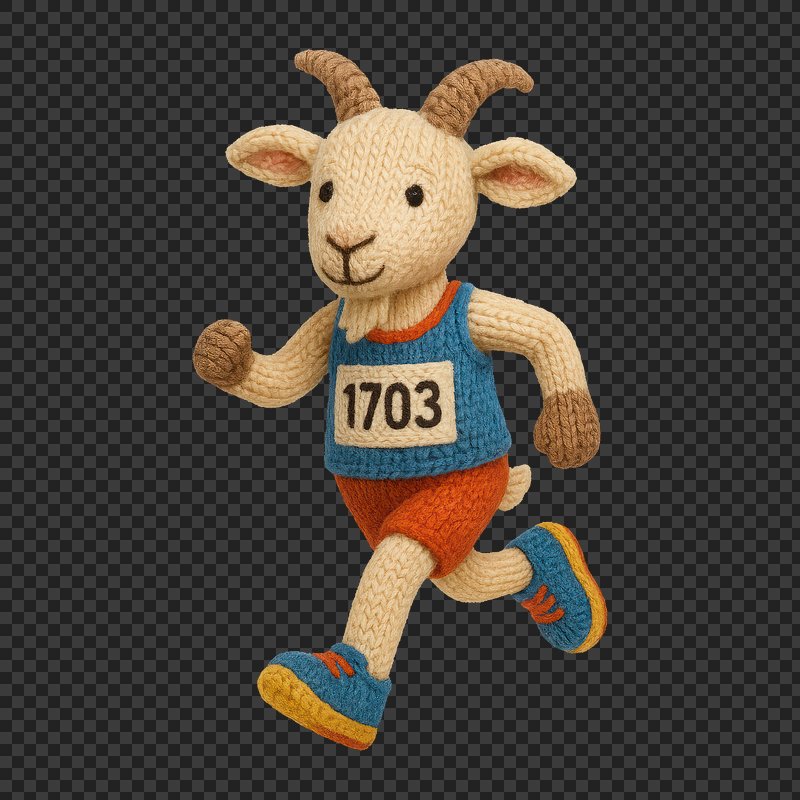 PNG Knitted goat athlete running. https://www.rawpixel.com/image/24480320/png-knitted-goat-athlete-runningView license