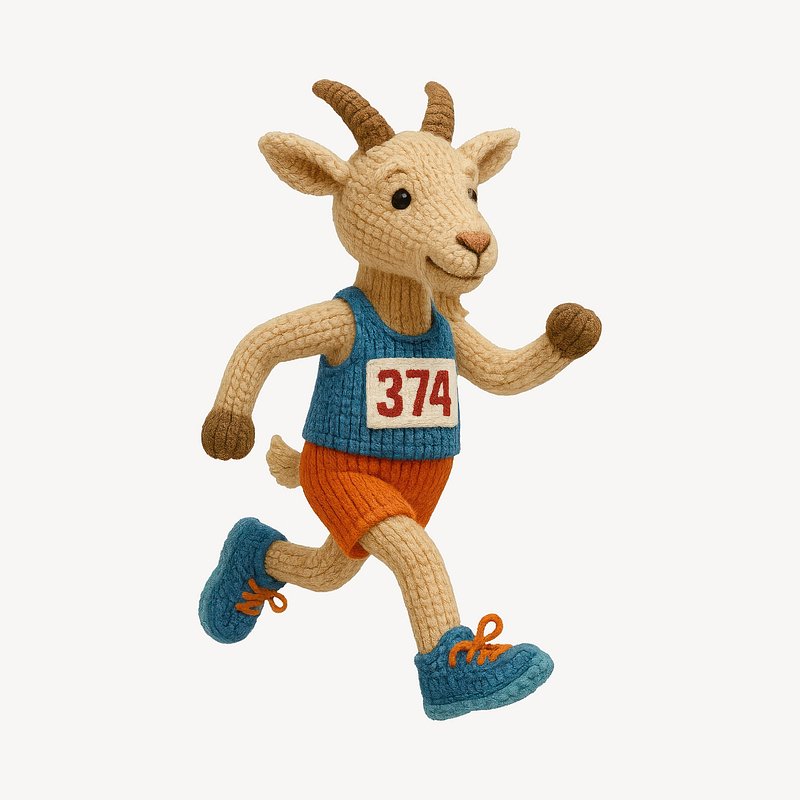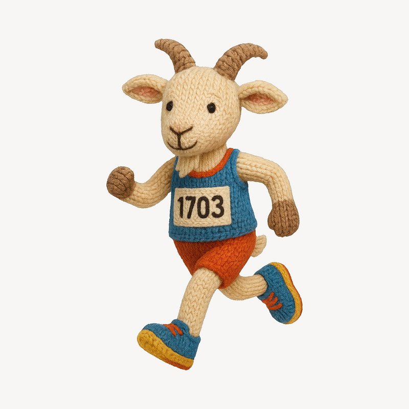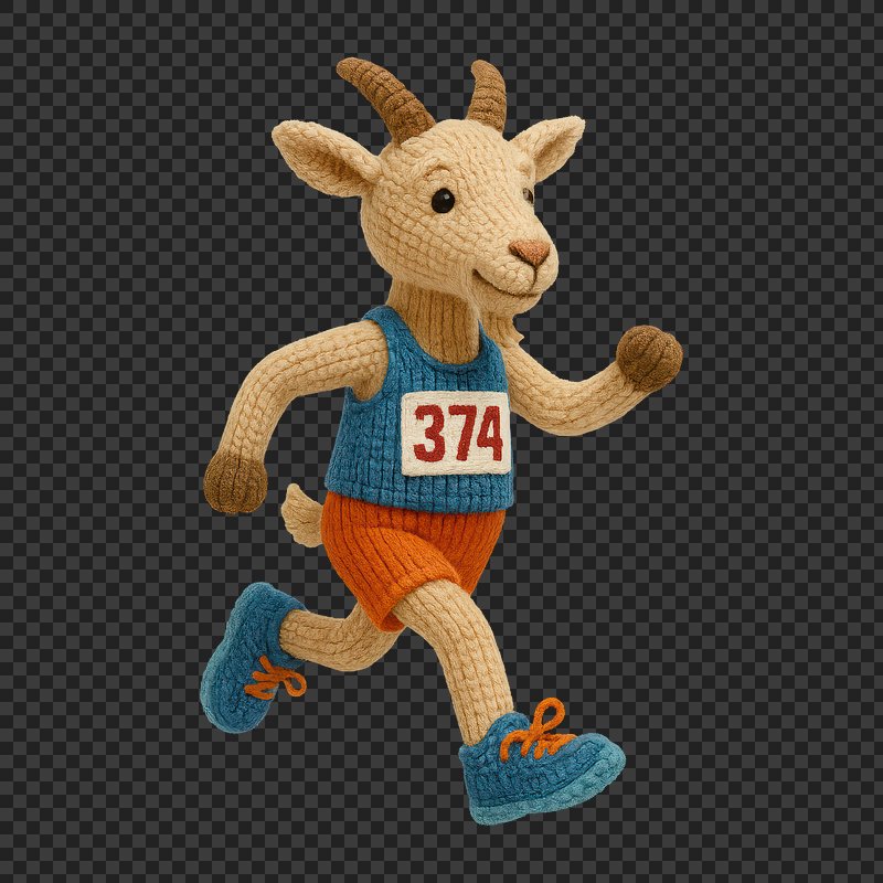 Knitted goat athlete running. https://www.rawpixel.com/image/24608718/knitted-goat-athlete-runningView license