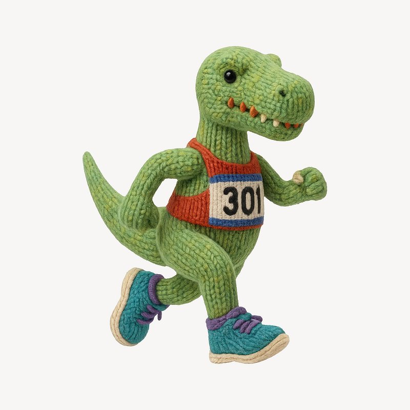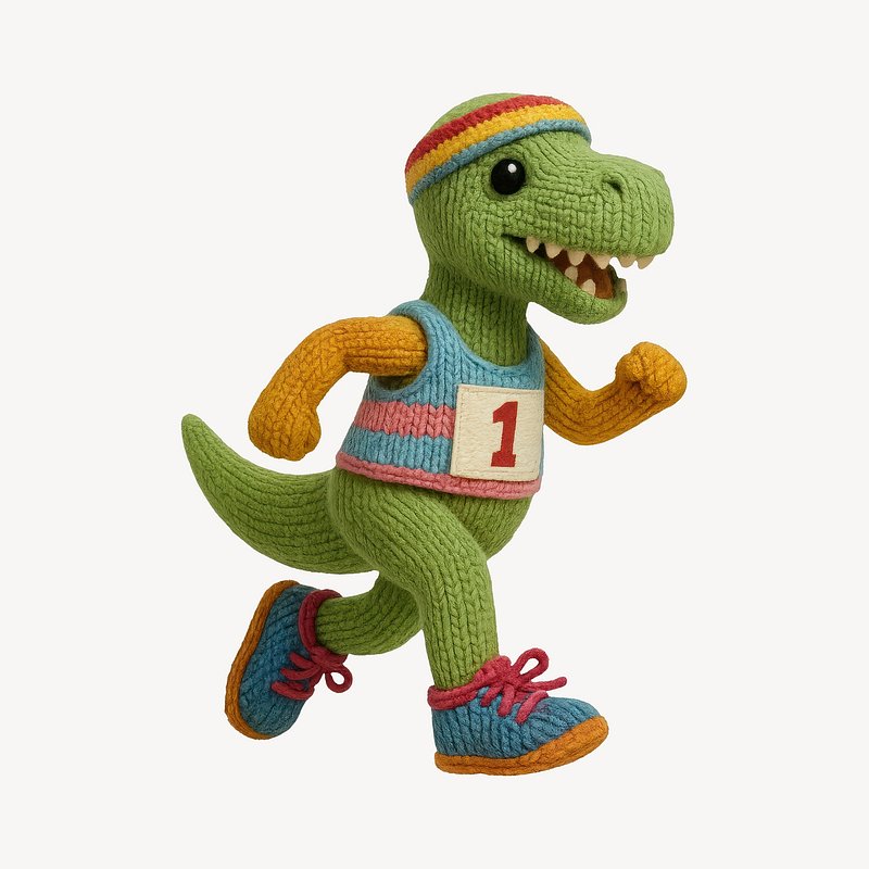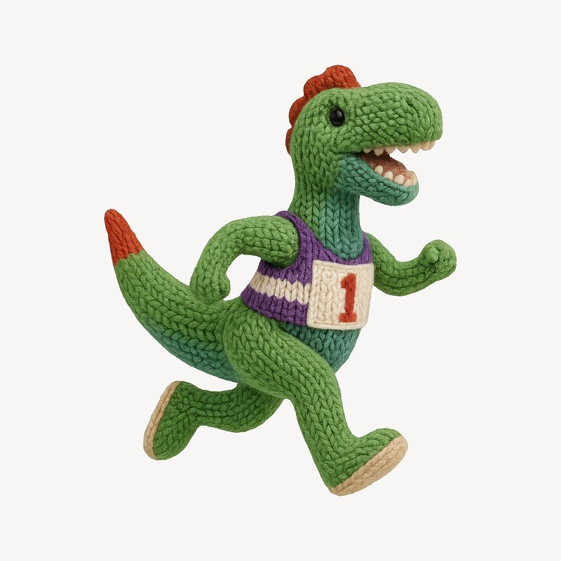Knitted dinosaur running enthusiastically. https://www.rawpixel.com/image/24532111/knitted-dinosaur-running-enthusiasticallyView license
