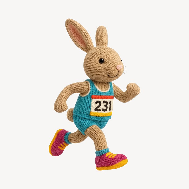 Knitted rabbit running athlete https://www.rawpixel.com/image/24606125/knitted-rabbit-running-athleteView license