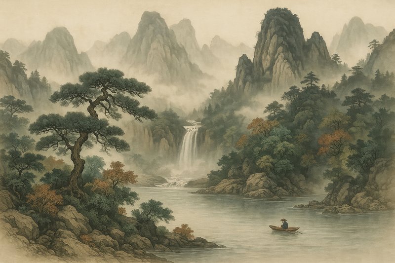 Serene landscape painting wallpaper. https://www.rawpixel.com/image/23854865/serene-landscape-painting-wallpaperView license