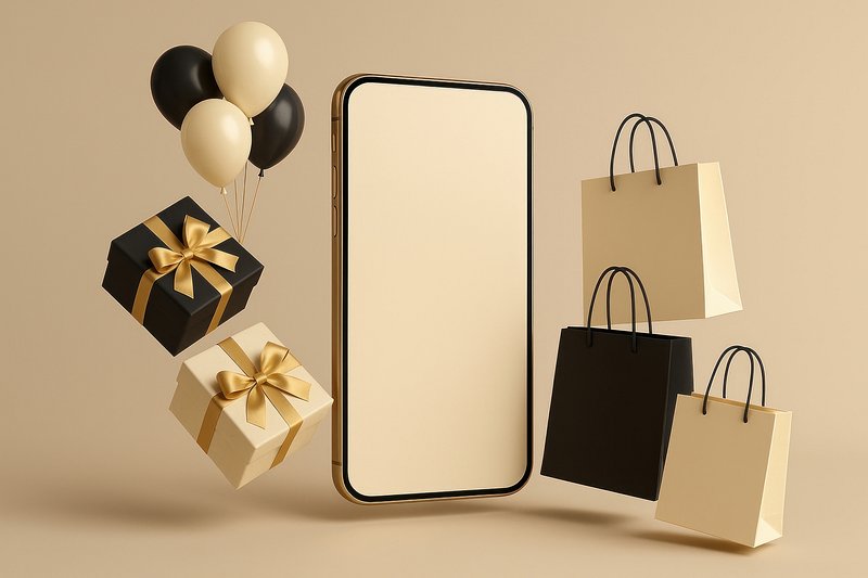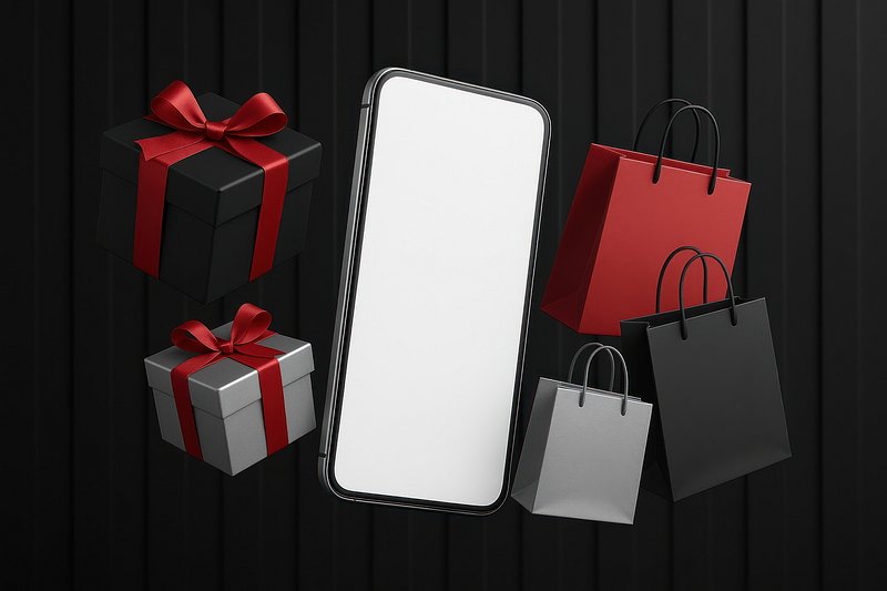 Smartphone surrounded by shopping bags. https://www.rawpixel.com/image/24364681/smartphone-surrounded-shopping-bagsView license