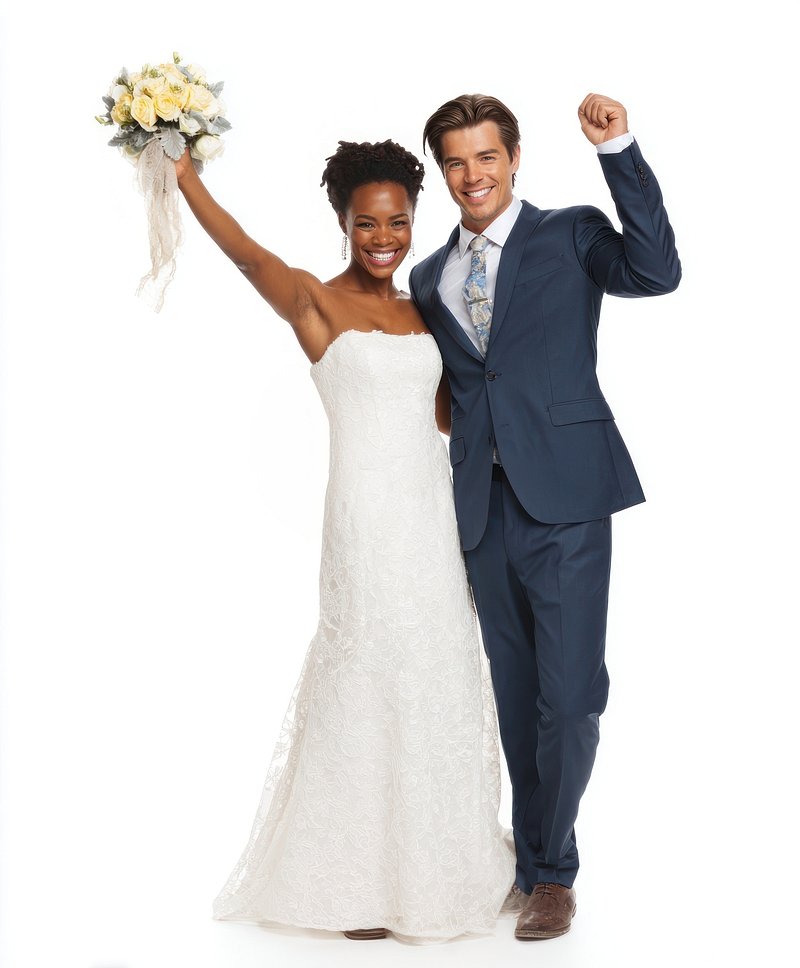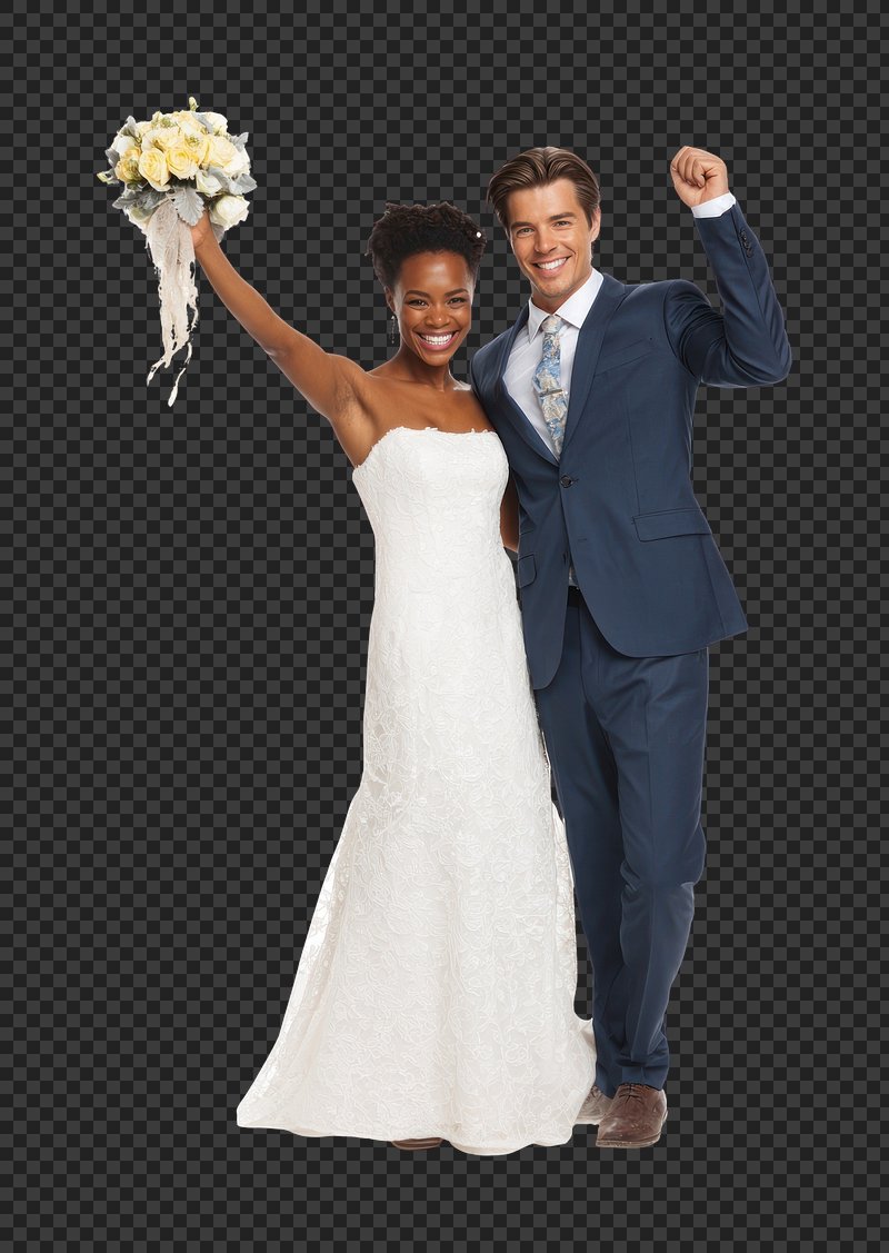 PNG Joyful newlyweds celebrating together. https://www.rawpixel.com/image/21559660/png-joyful-newlyweds-celebrating-togetherView license