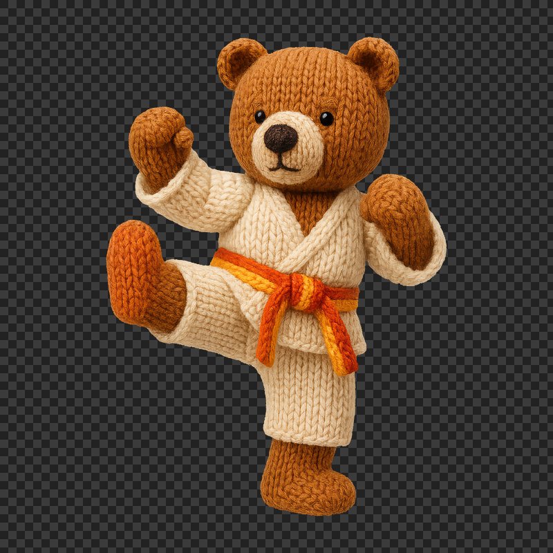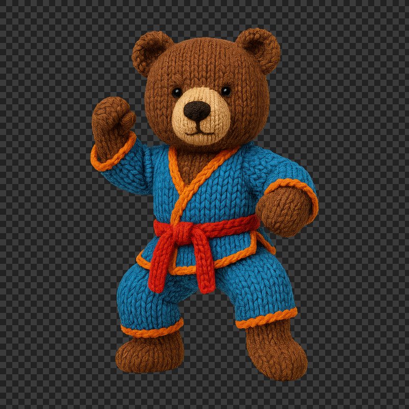 PNG Knitted bear practicing karate. https://www.rawpixel.com/image/24478433/png-knitted-bear-practicing-karateView license