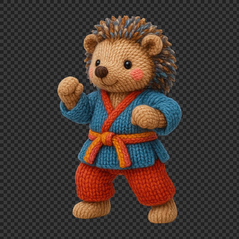 PNG Cute knitted hedgehog karate. https://www.rawpixel.com/image/24480062/png-cute-knitted-hedgehog-karateView license