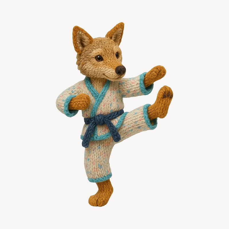 Knitted fox practicing martial arts. https://www.rawpixel.com/image/24535540/knitted-fox-practicing-martial-artsView license