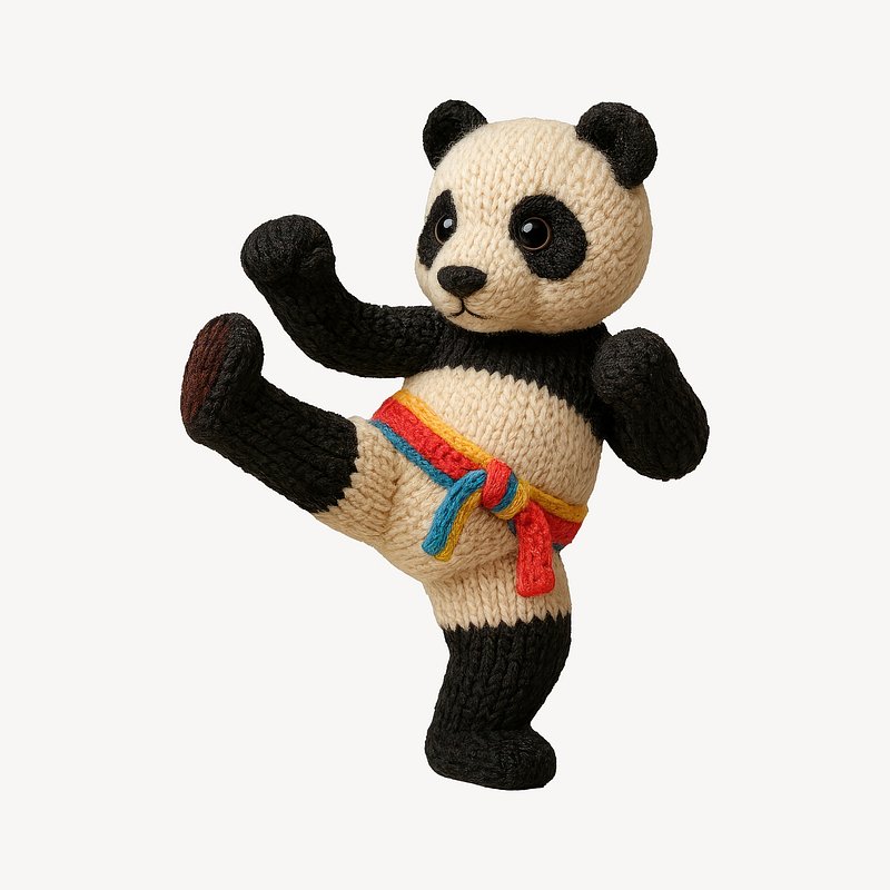 Knitted panda practicing karate moves. https://www.rawpixel.com/image/24659572/knitted-panda-practicing-karate-movesView license