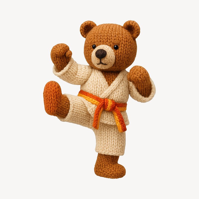 Knitted bear practicing karate. https://www.rawpixel.com/image/24606114/knitted-bear-practicing-karateView license