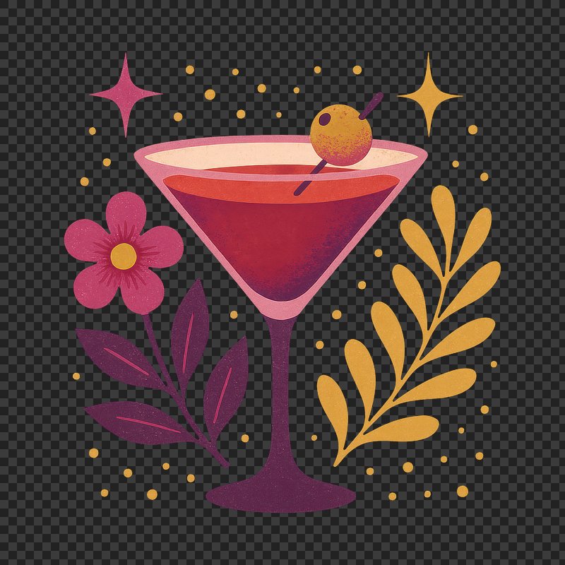 PNG Stylized cocktail glass illustration. https://www.rawpixel.com/image/21707112/png-stylized-cocktail-glass-illustrationView license