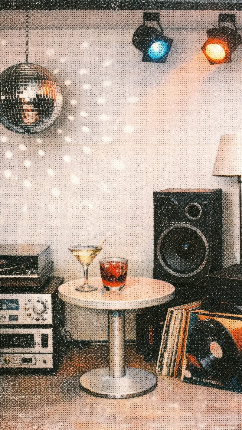 Retro disco vibe with drinks mobile wallpaper https://www.rawpixel.com/image/25446087/retro-disco-vibe-with-drinks-mobile-wallpaperView license