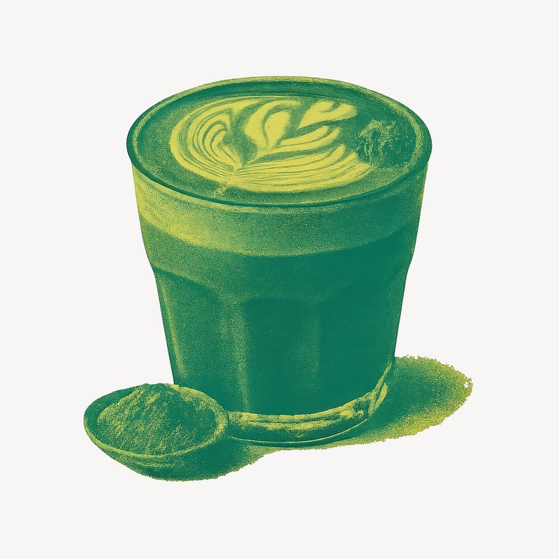 Artistic green matcha latte illustration. https://www.rawpixel.com/image/23020458/artistic-green-matcha-latte-illustrationView license