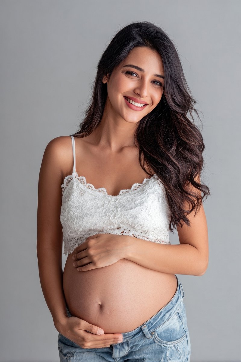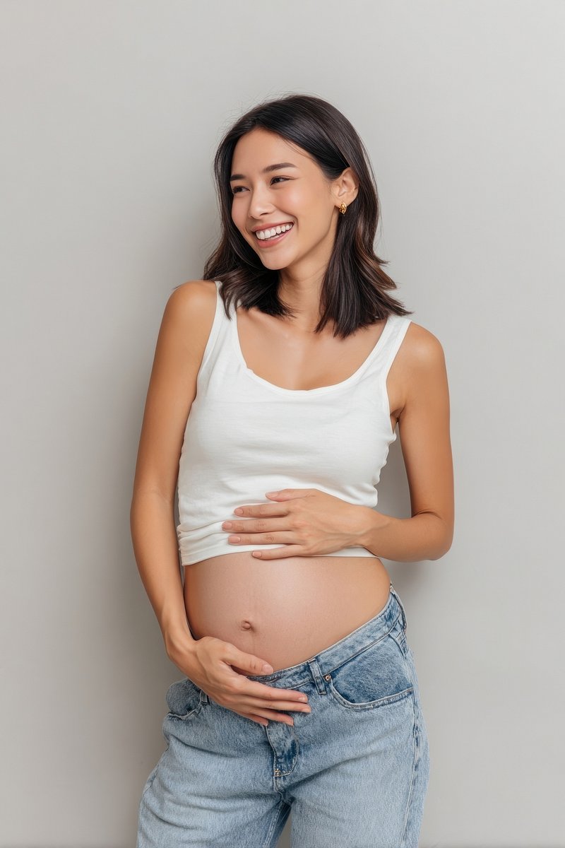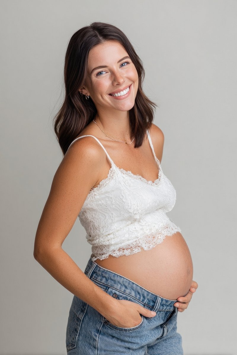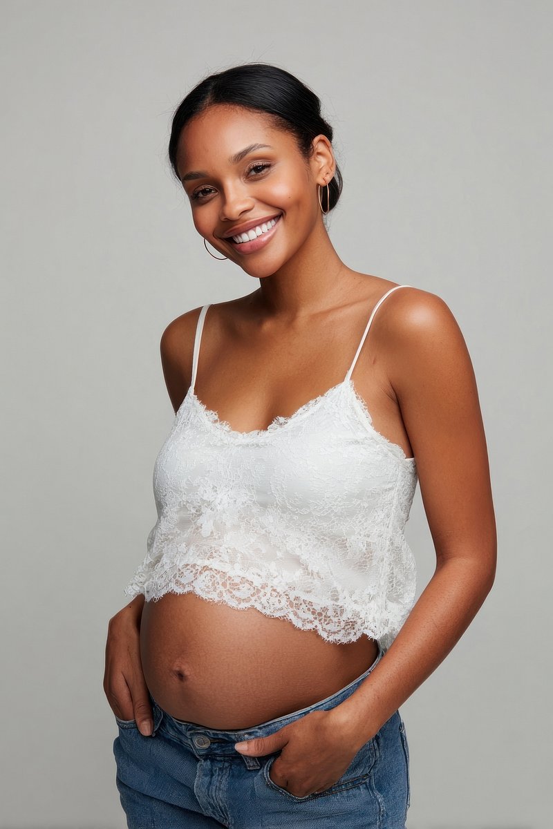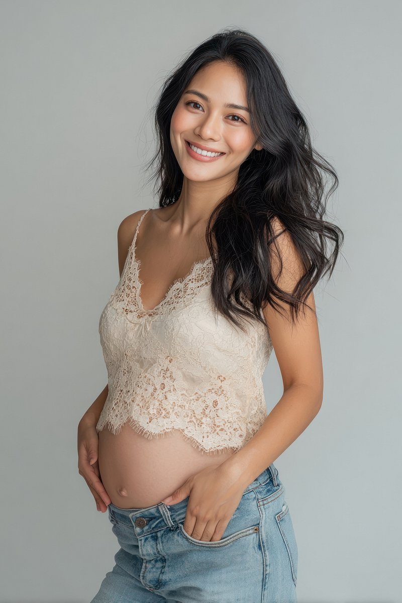 Smiling pregnant woman in jeans. https://www.rawpixel.com/image/24853231/smiling-pregnant-woman-jeansView license