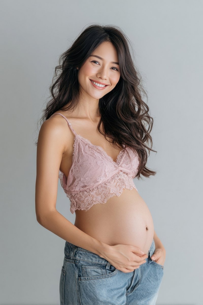 Joyful pregnant woman in denim. https://www.rawpixel.com/image/24884959/joyful-pregnant-woman-denimView license