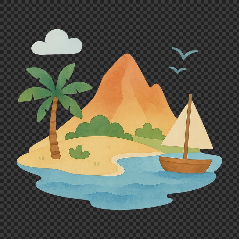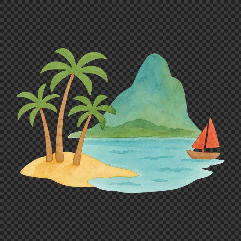 PNG Tropical island paradise illustration. https://www.rawpixel.com/image/18768859/png-tropical-island-paradise-illustrationView license